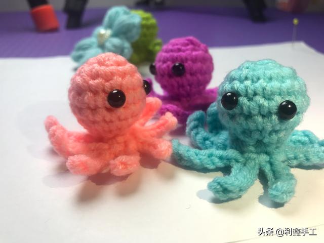 2、钩针编织——这个比较简单,只要会最基础的针法,通过更换不同颜色的钱就可以做出很多好玩的东西。因为入手最多的是空心线,所以我钩的多是小玩偶和各类小包包。同样是有的给孩子玩,有的送人,有的卖掉。