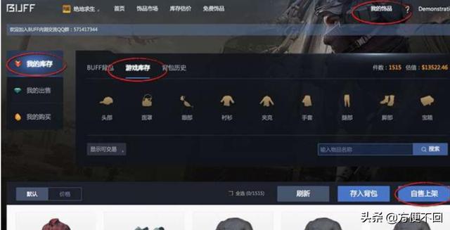 1、进入点击登录steam账号,我的饰品-我的库存-游戏库存 处挑选你想要出售的物品,点击上架。