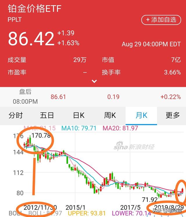 这是铂金etf交易走势!可以看出,从2012年,炒到一个历史高峰之后,一路回落,目前,随贵金属,整体行情看好,铂金有见底的迹象,大概率成立中期w底,向上有较强劲的动力!